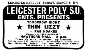 TOUR MAY-74 Line-up: Philip Lynott, Brian Downey, Andy Gee, John Du Cann Promotor: Helmut Klass, Hubert Siebert Euro-Music The info about this tour came from Thin Lizzy Itinerary belonging to John Du Cann A big thanks to James Bassam for the scans |